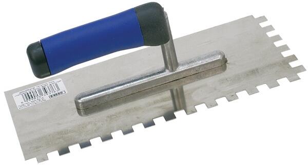 Kiváló rozsdamentes (inox) acélból készült lap. A glettelő négyszög fogazású. Puha gumi borítású fogóval rendelkezik, ami a folyamatos munkánál nagy előnyt jelent. Falfelületek, járófelületek lapokkal való burkolásakor csempéző glettvasat használjunk. A bekevert ragasztót egyenletes vastagságban, fogazott glettvassal kell felhordani a felületre, majd a végén a fogaz