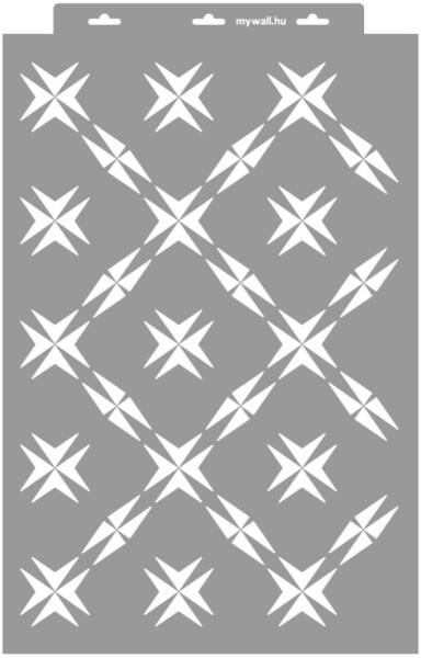 Minden irányban folytatható különböző léptékű stilizált csillagminta. Tartós, többször felhasználható áttetsző, rugalmas műanyag stencil. Ívelt felületekhez is használható. Felhasználói tippek: 1. Helyezd a festeni kívánt felületre a stencilt, rögzítsd maszkolószalag segítségével. 2. Kerek stencil-ecsettel vagy szivacsecsettel körkörös mozdulatokkal dolgozva vid