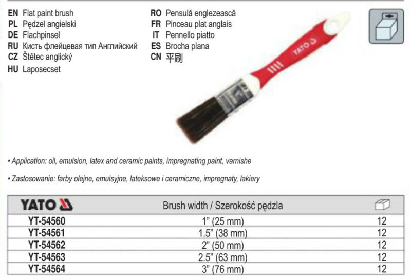 Kevert sörtéjű (szintetikus és természetes szál) ecset műanyag nyéllel. Általános ecset minden típusú festékhez.