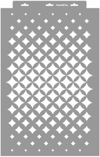 Szép, átmenetes raszteres hatású stencil minta. Tartós, többször felhasználható áttetsző, rugalmas műanyag stencil. Ívelt felületekhez is használható. Felhasználói tippek: 1. Helyezd a festeni kívánt felületre a stencilt, rögzítsd maszkolószalag segítségével. 2. Kerek stencil-ecsettel vagy szivacsecsettel körkörös mozdulatokkal dolgozva vidd fel a festéket. Nagyobb f