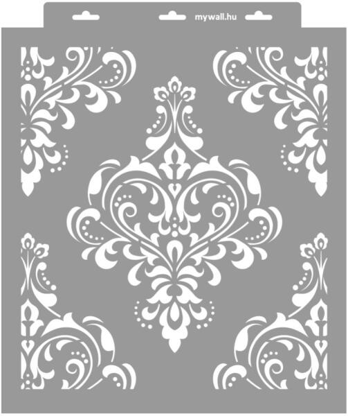 Klasszikus barokk minta! Fesd bárhová akár modern lakásban is, de túlzásba ne ess! Tartós, többször felhasználható áttetsző, rugalmas műanyag stencil. Ívelt felületekhez is használható. Felhasználói tippek: 1. Helyezd a festeni kívánt felületre a stencilt, rögzítsd maszkolószalag segítségével. 2. Kerek stencil-ecsettel vagy szivacsecsettel körkörös mozdulatokkal dol