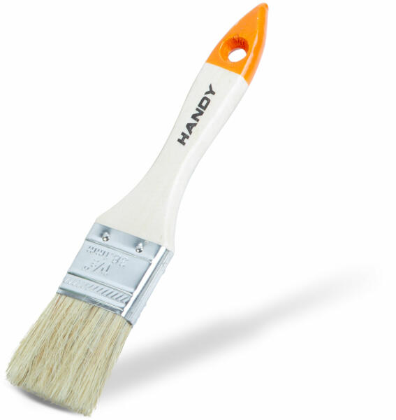 Fából készült hosszúnyelű ecset acél szorítópánttal. Ideális sarkok, élek festésére de lehet használni törékeny tárgyak portalanítására is.