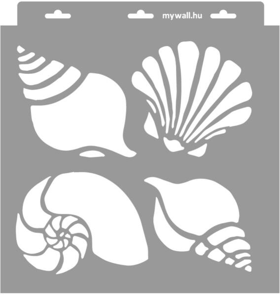 A tengerparti téma elengedhetetlen tartozékai a különféle formájó kagylók, csigaházak. Tartós, többször felhasználható áttetsző, rugalmas műanyag stencil. Ívelt felületekhez is használható. Felhasználói tippek: 1. Helyezd a festeni kívánt felületre a stencilt, rögzítsd maszkolószalag segítségével. 2. Kerek stencil-ecsettel vagy szivacsecsettel körkörös mozdulatok