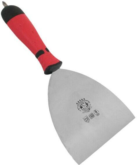 Ergonomikus kialakítású, kémiailag semleges, kétkomponensű markolat A markolat végében, fixen rögzített PH2 bit Precízen csiszolt rugalmas, az él felé csökkenő anyagvastagságú rozsdamentes acélpenge Glettelésre, hézagerősítő szalag beágyazására kitűnő szerszám Cikkszámméret (mm)anyagvastagság A (mm)anyagvastagság B (mm)042106-00441501,40, 4