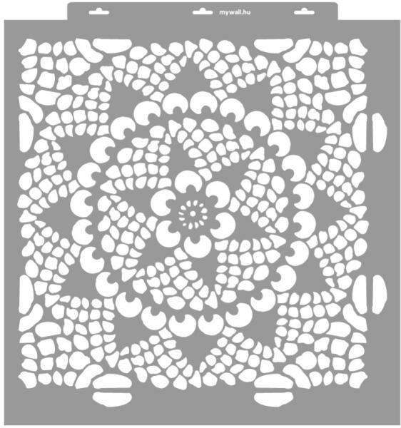 Gyönyörű csipkemintás stencil. Válassz 7 féle méret, és 2 féle vastagság közül! Tartós, többször felhasználható áttetsző, rugalmas műanyag stencil. Ívelt felületekhez is használható. Felhasználói tippek: 1. Helyezd a festeni kívánt felületre a stencilt, rögzítsd maszkolószalag segítségével. 2. Kerek stencil-ecsettel vagy szivacsecsettel körkörös mozdulatokkal