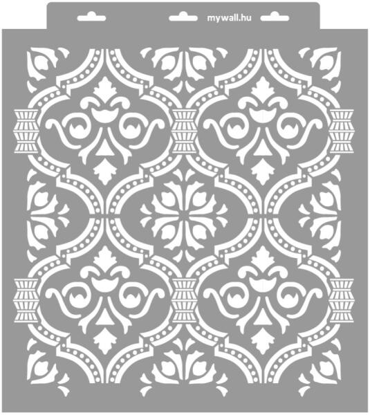 Ez a csodaszép minta egyszerre hordozza magában a barokkos pompát és a keleties egzotikum jegyeit. Minden irányban folytatható minta. A nagy léptékű falon, a kisebbek bútoron érvényesülnek. A képek között látható gyönyörű falat Farkas Hajnalka készítette, több más stencilt is felhasználva, mint pl. a Marokkó 08 és a Barokk 05. Tartós, többször felhasználható áttet