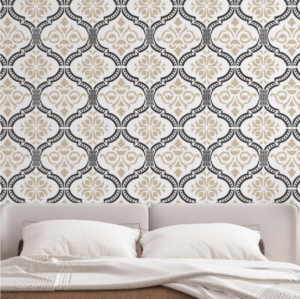 Ez a csodaszép minta egyszerre hordozza magában a barokkos pompát és a keleties egzotikum jegyeit. Minden irányban folytatható minta. A nagy léptékű falon, a kisebbek bútoron érvényesülnek. A képek között látható gyönyörű falat Farkas Hajnalka készítette, több más stencilt is felhasználva, mint pl. a Marokkó 08 és a Barokk 05. Tartós, többször felhasználható áttet