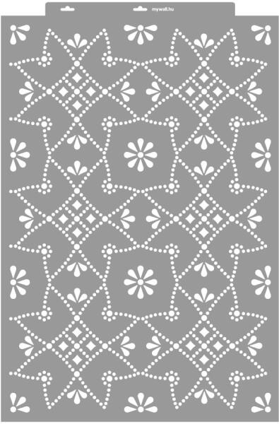Minden irányba folytatható geometrikus mintájú stencil többféle léptékben. Tartós, többször felhasználható áttetsző, rugalmas műanyag stencil. Ívelt felületekhez is használható. Felhasználói tippek: 1. Helyezd a festeni kívánt felületre a stencilt, rögzítsd maszkolószalag segítségével. 2. Kerek stencil-ecsettel vagy szivacsecsettel körkörös mozdulatokkal dolgozva
