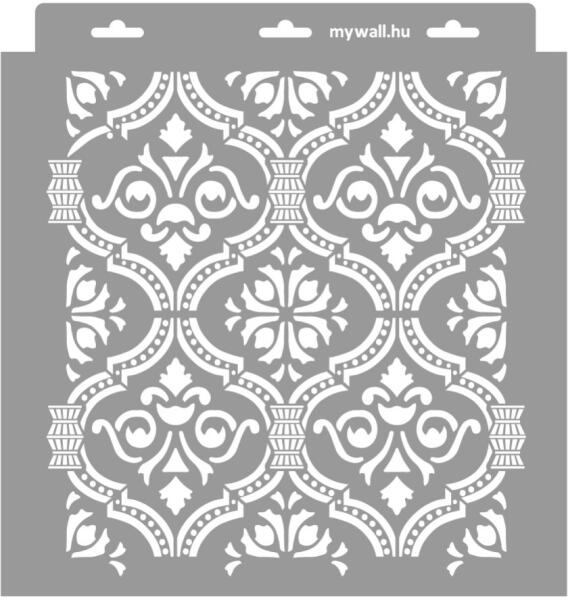 Ez a csodaszép minta egyszerre hordozza magában a barokkos pompát és a keleties egzotikum jegyeit. Minden irányban folytatható minta. A nagy léptékű falon, a kisebbek bútoron érvényesülnek. A képek között látható gyönyörű falat Farkas Hajnalka készítette, több más stencilt is felhasználva, mint pl. a Marokkó 08 és a Barokk 05. Tartós, többször felhasználható áttet