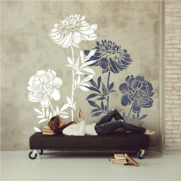 Ez ÓRIÁSI! Akár csak az öltözködésben, úgy a lakberendezésben is újra és újra előtérbe kerül az oversized stílus, amely eltúlzott mértékben felnagyított mintáival egy egészen különleges enteriőrt teremt. Ezekkel a gigaméretű bazsarózsa stencilekkel most te is kipróbálhatod ezt a trendet. De vigyázz, az ilyen hatalmas motívumok urallják a teret. A bútorzat maradjon