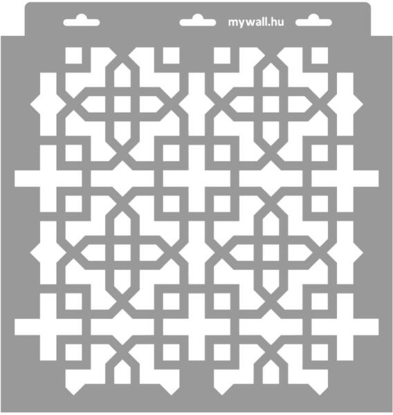 Minden irányban folytatható klasszikus marokkói rácsminta. Dekorfal készítéséhez használd a 3D változatot. Tartós, többször felhasználható áttetsző, rugalmas műanyag stencil. Ívelt felületekhez is használható. Felhasználói tippek: 1. Helyezd a festeni kívánt felületre a stencilt, rögzítsd maszkolószalag segítségével. 2. Kerek stencil-ecsettel vagy szivacsecsettel k