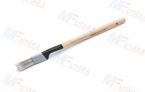 A finom végű szintetikus szálak sima, egyenletes fedést biztosítanak, minimális ecsetnyomokkal Tökéletes beltéri fal vagy mennyezet festéséhez, és mindenféle festékkel és lakkal használható A tömör, kúpos szálakkal kiválóan kezelhetők a precíziós munkát igénylő területek, szuper festékfelvételi és -terítési sebességgel Rozsdamentes acél lemez rögzíti a sört
