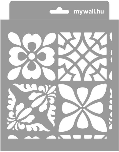 Különleges egyveleg a retró cementlapok hangulatában. Tipp: fesd harmónikus színekkel, még szebb, ha itt-ott visszatörlöd, koptatod! Főkép: Marton Krisztina munkája. Tartós, többször felhasználható áttetsző, rugalmas műanyag stencil. Ívelt felületekhez is használható. Felhasználói tippek: 1. Helyezd a festeni kívánt felületre a stencilt, rögzítsd maszkolószalag seg