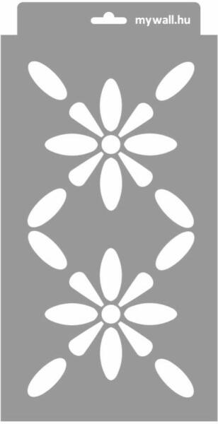 Minden irányba folytatható ez a stilizált virágmező. A 3. kép Holl Marina workshopján készült. Tartós, többször felhasználható áttetsző, rugalmas műanyag stencil. Ívelt felületekhez is használható. Felhasználói tippek: 1. Helyezd a festeni kívánt felületre a stencilt, rögzítsd maszkolószalag segítségével. 2. Kerek stencil-ecsettel vagy szivacsecsettel körkörös mo