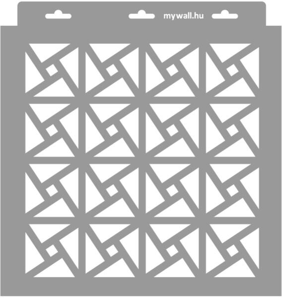 Egyszerű, de nagyszerű alap geometrikus hálóminta. Rusztikus bútorokon remekül mutat. Minden irányba folytatható. Tartós, többször felhasználható áttetsző, rugalmas műanyag stencil. Ívelt felületekhez is használható. Felhasználói tippek: 1. Helyezd a festeni kívánt felületre a stencilt, rögzítsd maszkolószalag segítségével. 2. Kerek stencil-ecsettel vagy szivacsecset