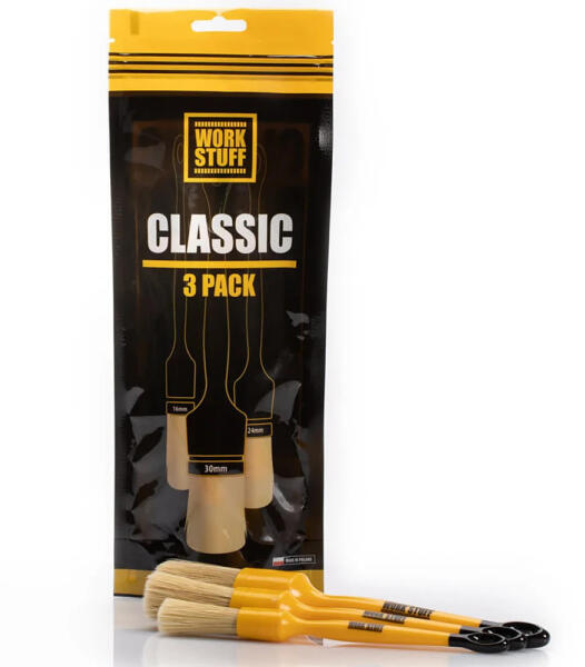 Work Stuff Classic Autókozmetikai Ecset Készlet 3db A Detailing Classic csomag egy sokoldalú ecset szett, amely különféle tisztítási feladatokhoz alkalmas. Akár a felniket, akár az autó belsejét tisztítja, ezek az ecsetek tökéletesek a munkához. A kényelmes fogórész biztos fogást biztosít, megkönnyítve a nehezen elérhető helyek tisztítását a fényezés károsodásának