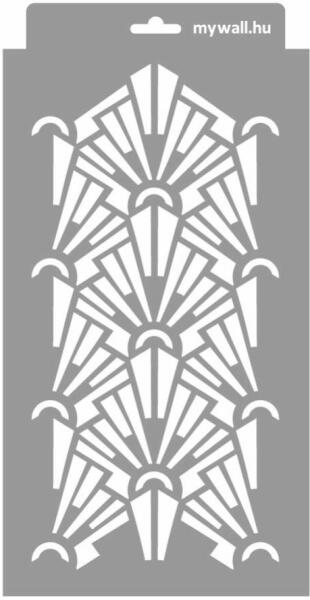 Adj stílust megunt bútoraidnak, teremts fókuszpontot Artdeco stencilünkkel. A stencil Marina Holl inspirációjára készült. Fekete szekrényét a 3D változattal dombormintázta. Tartós, többször felhasználható áttetsző, rugalmas műanyag stencil. Ívelt felületekhez is használható. Felhasználói tippek: 1. Helyezd a festeni kívánt felületre a stencilt, rögzítsd maszkolósza