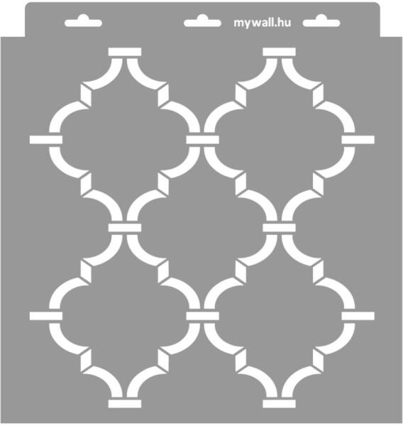 Minden irányban folytatható klasszikus marokkói rácsminta. A nagy léptékűek falon, a kisebbek bútoron érvényesülnek leginkább. Tartós, többször felhasználható áttetsző, rugalmas műanyag stencil. Ívelt felületekhez is használható. Felhasználói tippek: 1. Helyezd a festeni kívánt felületre a stencilt, rögzítsd maszkolószalag segítségével. 2. Kerek stencil-ecsettel