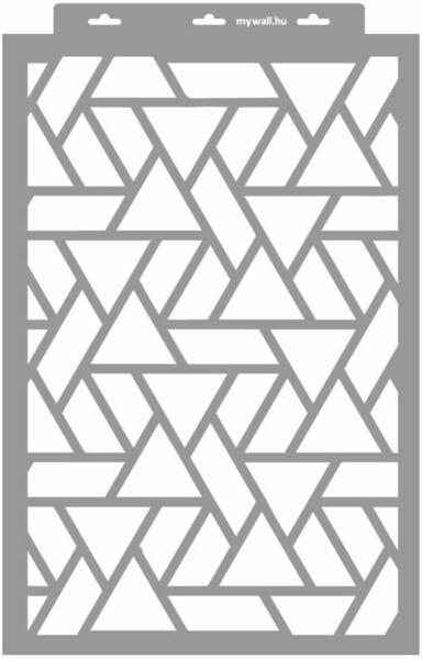 Minden irányba folytatható geometrikus mintájú stencil többféle léptékben. Tartós, többször felhasználható áttetsző, rugalmas műanyag stencil. Ívelt felületekhez is használható. Felhasználói tippek: 1. Helyezd a festeni kívánt felületre a stencilt, rögzítsd maszkolószalag segítségével. 2. Kerek stencil-ecsettel vagy szivacsecsettel körkörös mozdulatokkal dolgozva