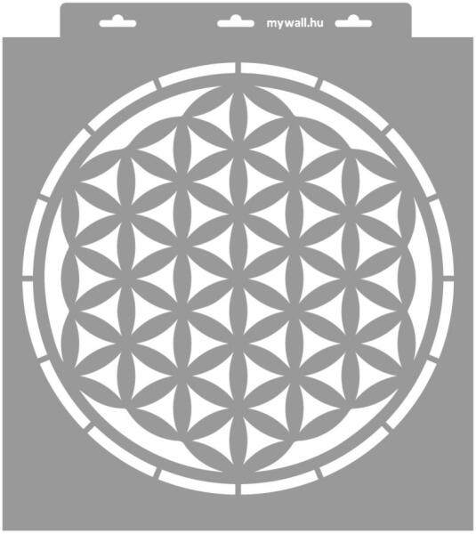 Az élet virága mandala ősidők óta különleges tiszteletnek örvend számos kultúrában. Ez a szimbólum az erők harmonizálásának, a harmóniába kerülésnek, valamint az istenséggel/szellemmel való egyesülésnek a jelképe és útja. Az élet virága stencillel becsempészhetsz környezetedbe egy cseppnyi harmóniát. Tartós, többször felhasználható áttetsző, rugalmas műanya