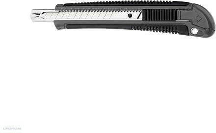 Könnyű műanyag testű kés ergonómikus formájú lágy fogantyúval. Szürke/fekete színű. 9 mm-es pengéjű 5 év garancia .