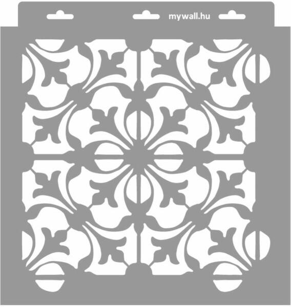 Közkedvelt marokkói stencilminta. Izgalmas, áttört hatású felületet képezhetsz vele bármely felületen. 3D változatban (350 mikron vastag) is kérheted, mellyel tudsz festeni, és plasztikus mintázatot is tudsz képezni. Tartós, többször felhasználható áttetsző, rugalmas műanyag stencil. Ívelt felületekhez is használható. Felhasználói tippek: 1. Helyezd a festeni kívánt