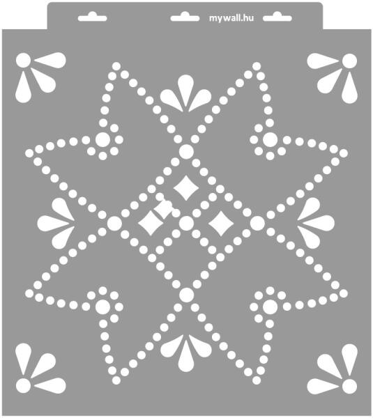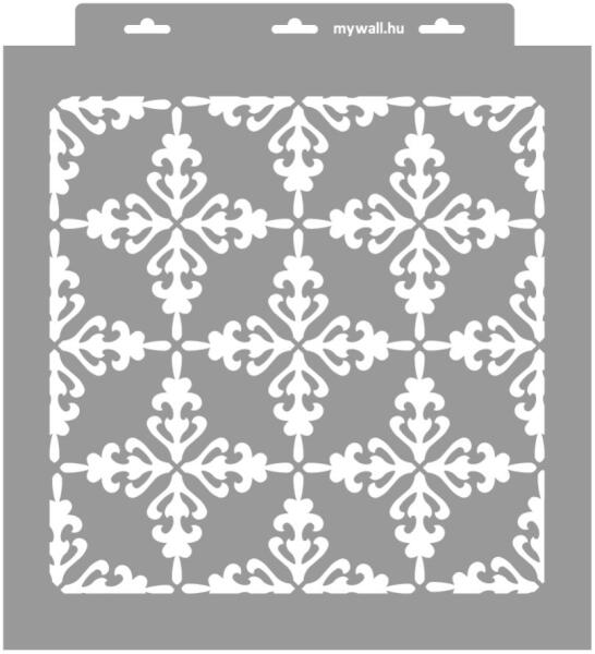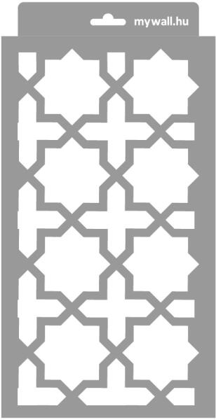 Közkedvelt marokkói stencilminta. Izgalmas, áttört hatású felületet képezhetsz vele bármely felületen. 3D változatban (350 mikron vastag) is kérheted, mellyel tudsz festeni, és plasztikus mintázatot is tudsz képezni. Tartós, többször felhasználható áttetsző, rugalmas műanyag stencil. Ívelt felületekhez is használható. Felhasználói tippek: 1. Helyezd a festeni kívánt