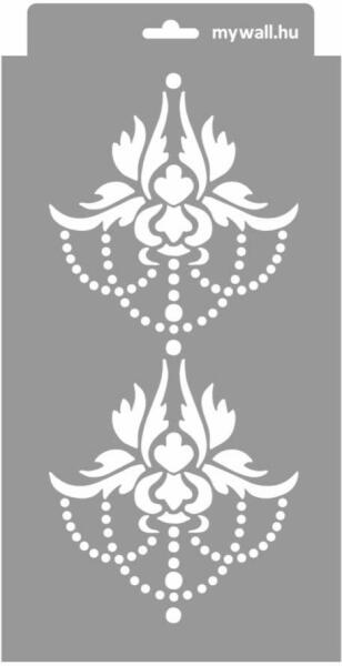 Klasszikus barokk minta, kissé újragondolva. Számomra a kristály csillárok hangulatát idézi. Tartós, többször felhasználható áttetsző, rugalmas műanyag stencil. Ívelt felületekhez is használható. Felhasználói tippek: 1. Helyezd a festeni kívánt felületre a stencilt, rögzítsd maszkolószalag segítségével. 2. Kerek stencil-ecsettel vagy szivacsecsettel körkörös mozdul
