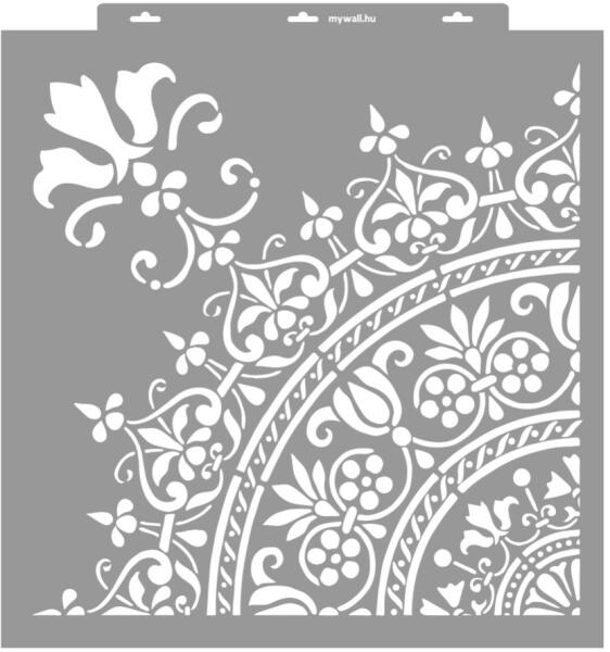 Modern enteriőrök díszítő eleme. Kovácsoltvas hatású stencil. 3D változatban (350 mikron vastag) is kérheted, mellyel tudsz festeni, és plasztikus mintázatot is tudsz képezni. Tartós, többször felhasználható áttetsző, rugalmas műanyag stencil. Ívelt felületekhez is használható. Felhasználói tippek: 1. Helyezd a festeni kívánt felületre a stencilt, rögzítsd maszkoló