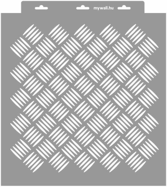 Ipari jellegű, grunge acélmintázat modern, high-tech enteriőrök stílusos létrehozására. Használhatod falon, padlón, bútoron, de akár extravagáns textilen is. A legtökéletesebb hatást 3D technikával érheted el. (3D pasztával, vagy egy kis eltolással, árnyék hozzáfestésével. ) Tartós, többször felhasználható áttetsző, rugalmas műanyag stencil. Ívelt felületekhez i
