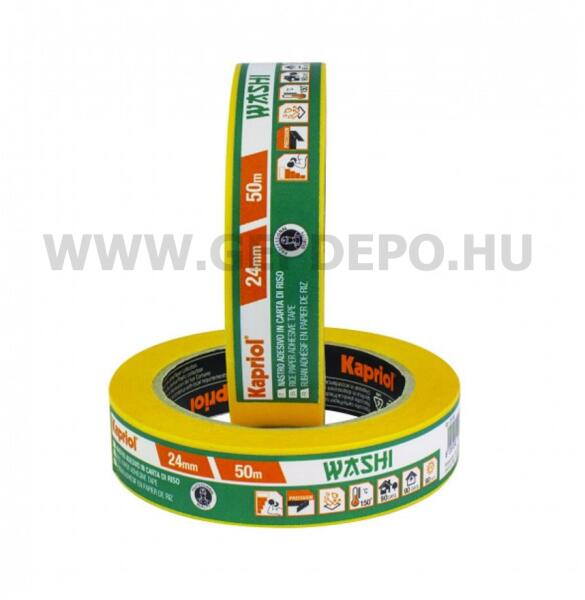 Kapriol Washi festőszalag 24mm x 50mA KAPRIOL márka a professzionális igényeket kielégítő ragasztószalagok széles választékát kínálja. Professzionális ragasztószalag rizspapírból és növényi szálból. Ideális az építőiparban, a dekorációban és az autó karosszériájának maszkolásában. Garantálja a pontos határokat, és hosszú idő után is könnyen eltávolíthat