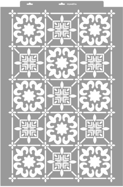 Különleges csempeminta azoknak, akik szeretnek eltérni a megszokottól. Ennek a stencilnek egyedi bája az afrikai motívumok játéka. Tartós, többször felhasználható áttetsző, rugalmas műanyag stencil. Ívelt felületekhez is használható. Felhasználói tippek: 1. Helyezd a festeni kívánt felületre a stencilt, rögzítsd maszkolószalag segítségével. 2. Kerek stencil-ecsettel