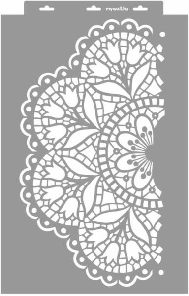 Hagyományos vert csipke motívum egy kis tavaszias tulipán díszítéssel. Húsvéti kiegészítők dekorálására is tökéletes. Tartós, többször felhasználható áttetsző, rugalmas műanyag stencil. Ívelt felületekhez is használható. Felhasználói tippek: 1. Helyezd a festeni kívánt felületre a stencilt, rögzítsd maszkolószalag segítségével. 2. Kerek stencil-ecsettel vagy