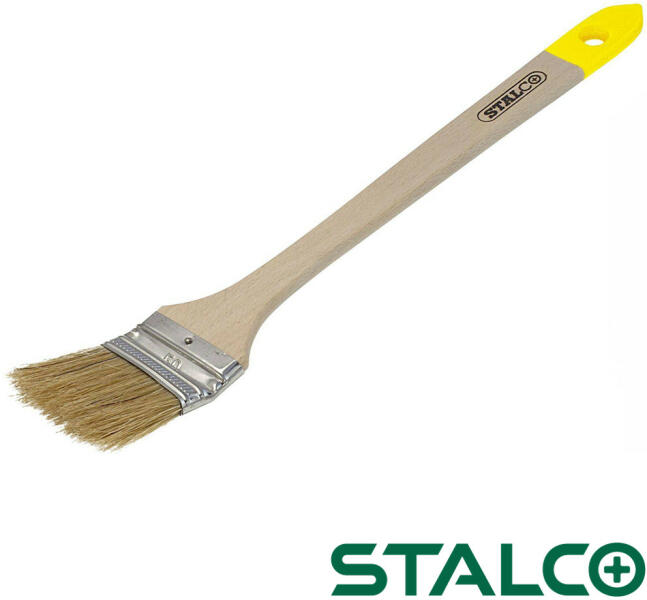 Profi radiátorecset fa nyéllel (univerzális) Kék soft műszál sörte Zománcokhoz, lazúrokhoz, vízbázisú és oldószeres festékekhez Kék szintetikus szálak, FSC tanusítvánnyal ellátott natúr fa nyél, rozsdamentes bádogozás. Kétszer nagyobb festékfelvevő, és megtartó tulajdonság speciális kialakításának köszönhetően. Lazúrokhoz, zománcokhoz, vízbázisú és oldós
