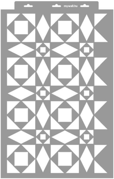 Egyszerű, de nagyszerű alap geometrikus hálóminta. Rusztikus bútorokon remekül mutat. Minden irányba folytatható. Tartós, többször felhasználható áttetsző, rugalmas műanyag stencil. Ívelt felületekhez is használható. Felhasználói tippek: 1. Helyezd a festeni kívánt felületre a stencilt, rögzítsd maszkolószalag segítségével. 2. Kerek stencil-ecsettel vagy szivacsecset