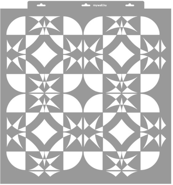 Minden irányban folytatható klasszikus marokkói rácsminta. Dekorfal készítéséhez használd a 3D változatot. Tartós, többször felhasználható áttetsző, rugalmas műanyag stencil. Ívelt felületekhez is használható. Felhasználói tippek: 1. Helyezd a festeni kívánt felületre a stencilt, rögzítsd maszkolószalag segítségével. 2. Kerek stencil-ecsettel vagy szivacsecsettel k