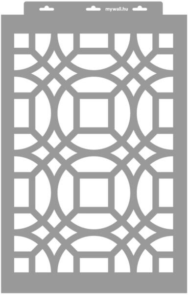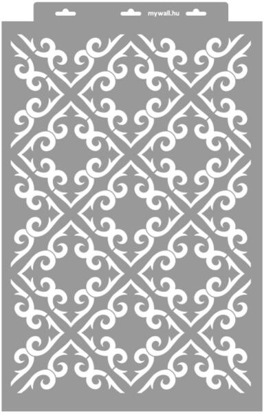 Modern enteriőrök díszítő eleme. Kovácsoltvas hatású stencil. 3D változatban (350 mikron vastag) is kérheted, mellyel tudsz festeni, és plasztikus mintázatot is tudsz képezni. Tartós, többször felhasználható áttetsző, rugalmas műanyag stencil. Ívelt felületekhez is használható. Felhasználói tippek: 1. Helyezd a festeni kívánt felületre a stencilt, rögzítsd maszkoló