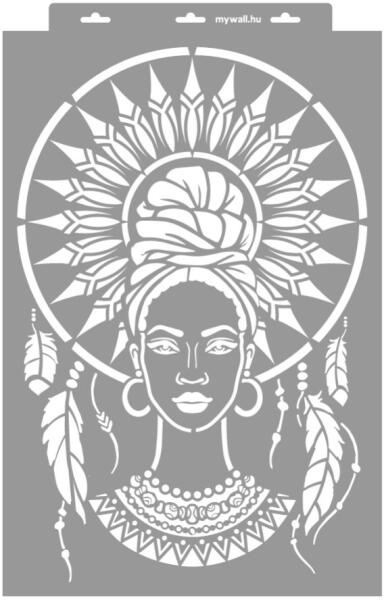 Ez a stencilcsalád egy gyönyörű, álomfogó stílusú fejdísszel díszített, indián női arcot formázó minta. A stencil rendkívül részletgazdag, a fejdísz finom részletei különösen jól mutatnak az arc körvonalai mellett. Az álomfogó stílusú fejdíszek az indián kultúrában fontos szerepet játszanak, és sokszor találkozunk velük az amerikai őslakosok hagyományos élet