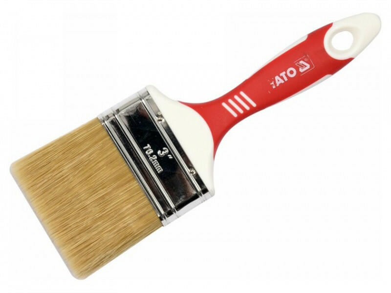 Könnyen tisztítható, szintetikus sörtéjű ecset, döntött foglalatban, nehezen hozzáférhető felületek festéséhez. Hosszú, keményfa nyél, rozsdamentes acél foglalat. Vízbázisú festékekhez