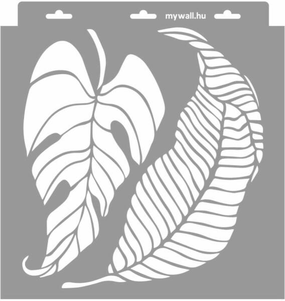 Különböző levélformákkal varázsolhatod a természetet a lakásba. Kombináld a más-más formájú és méretű levél mintákat az igazi dzsungelhangulat eléréséhez. Tartós, többször felhasználható áttetsző, rugalmas műanyag stencil. Ívelt felületekhez is használható. Felhasználói tippek: 1. Helyezd a festeni kívánt felületre a stencilt, rögzítsd maszkolószalag segí