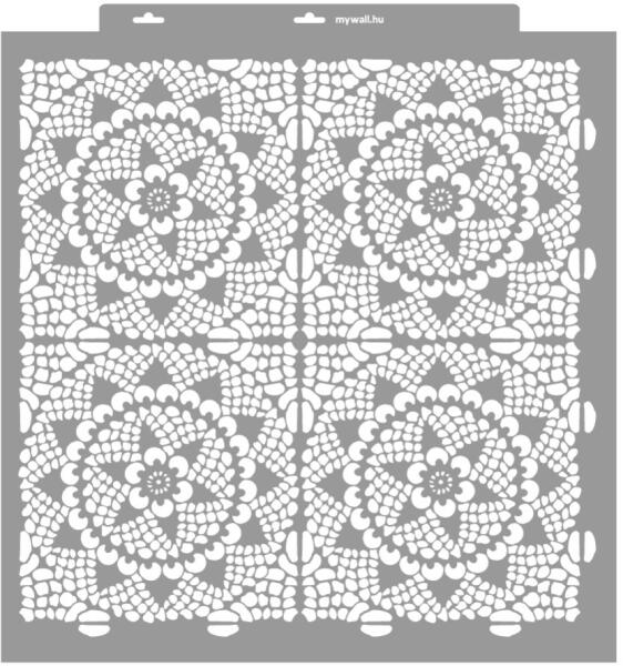 Gyönyörű csipkemintás stencil. Válassz 7 féle méret, és 2 féle vastagság közül! Tartós, többször felhasználható áttetsző, rugalmas műanyag stencil. Ívelt felületekhez is használható. Felhasználói tippek: 1. Helyezd a festeni kívánt felületre a stencilt, rögzítsd maszkolószalag segítségével. 2. Kerek stencil-ecsettel vagy szivacsecsettel körkörös mozdulatokkal