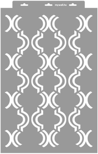 Minden irányban folytatható klasszikus marokkói rácsminta. A nagy léptékű falon, a kisebbek bútoron érvényesülnek leginkább. Tartós, többször felhasználható áttetsző, rugalmas műanyag stencil. Ívelt felületekhez is használható. Felhasználói tippek: 1. Helyezd a festeni kívánt felületre a stencilt, rögzítsd maszkolószalag segítségével. 2. Kerek stencil-ecsettel va
