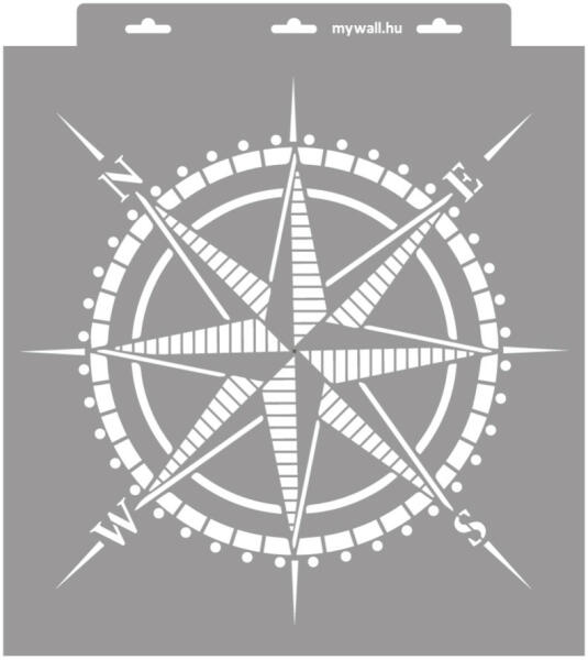 Iránytű a falon, terasz padlóján, díszpárnán, bárhol. Ezt a stencilt kreatív vásárlóink nagyon szeretik, és a legkülönbözőbb felületeken használják festésre, vagy glettelésre. Tartós, többször felhasználható áttetsző, rugalmas műanyag stencil. Ívelt felületekhez is használható. Felhasználói tippek: 1. Helyezd a festeni kívánt felületre a stencilt, rögzítsd