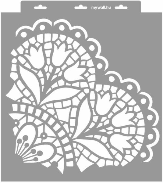 Hagyományos vert csipke motívum egy kis tavaszias tulipán díszítéssel. Húsvéti kiegészítők dekorálására is tökéletes. Tartós, többször felhasználható áttetsző, rugalmas műanyag stencil. Ívelt felületekhez is használható. Felhasználói tippek: 1. Helyezd a festeni kívánt felületre a stencilt, rögzítsd maszkolószalag segítségével. 2. Kerek stencil-ecsettel vagy