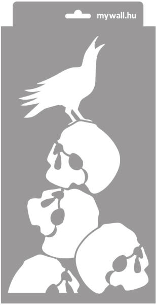 Egy rakás emberi koponya, a kupac tetején károgó varjakkal. Mi is lehetne félelmetesebb. Használd ezt a stencilmintát Halloween-i, vagy vad gót stílusú dekorációkhoz. Tartós, többször felhasználható áttetsző, rugalmas műanyag stencil. Ívelt felületekhez is használható. Felhasználói tippek: 1. Helyezd a festeni kívánt felületre a stencilt, rögzítsd maszkolószalag seg