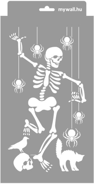 Plafonról lógó pókok és táncoló csontvázak. Ezeken a stencileken minden megvan, ami egy igazán rémisztő Halloweenhez kell. Tartós, többször felhasználható áttetsző, rugalmas műanyag stencil. Ívelt felületekhez is használható. Felhasználói tippek: 1. Helyezd a festeni kívánt felületre a stencilt, rögzítsd maszkolószalag segítségével. 2. Kerek stencil-ecsettel vagy