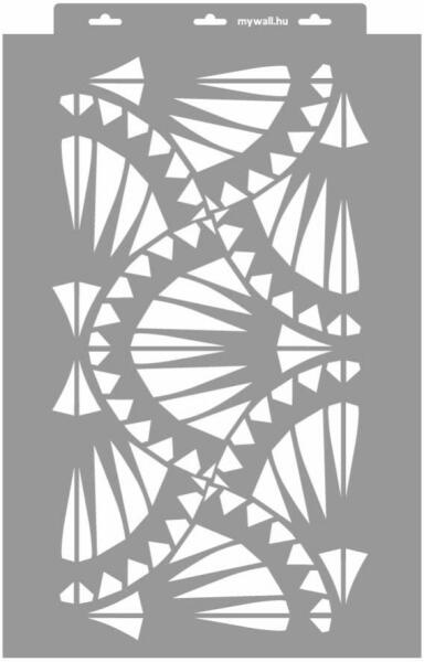 Minden irányba folytatható elegáns legyező minta, (nem csak) az artdeco szerelmeseinek. Tartós, többször felhasználható áttetsző, rugalmas műanyag stencil. Ívelt felületekhez is használható. Felhasználói tippek: 1. Helyezd a festeni kívánt felületre a stencilt, rögzítsd maszkolószalag segítségével. 2. Kerek stencil-ecsettel vagy szivacsecsettel körkörös mozdulatokkal