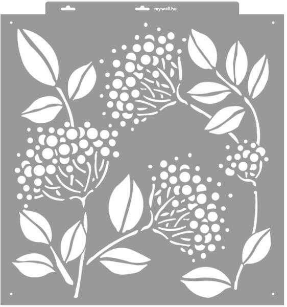 A bodza bogyós termésének finom részleteit és organikus formáit ötvöző stencilkészletünk lehetővé teszi, hogy egyedi és varázslatos alkotásokat hozzon létre otthonában. Tartós, többször felhasználható áttetsző, rugalmas műanyag stencil. Ívelt felületekhez is használható. Felhasználói tippek: 1. Helyezd a festeni kívánt felületre a stencilt, rögzítsd maszkolósz