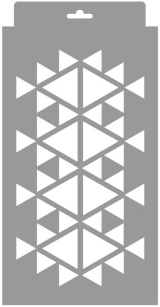 Minden irányba folytatható geometrikus mintájú stencil többféle léptékben. Tartós, többször felhasználható áttetsző, rugalmas műanyag stencil. Ívelt felületekhez is használható. Felhasználói tippek: 1. Helyezd a festeni kívánt felületre a stencilt, rögzítsd maszkolószalag segítségével. 2. Kerek stencil-ecsettel vagy szivacsecsettel körkörös mozdulatokkal dolgozva