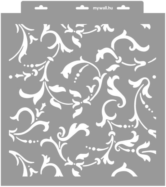 Miden irányba folytatható indás-leveles, romantikus minta. Pontos méreteket a vágási rajznál keresd! Tartós, többször felhasználható áttetsző, rugalmas műanyag stencil. Ívelt felületekhez is használható. Felhasználói tippek: 1. Helyezd a festeni kívánt felületre a stencilt, rögzítsd maszkolószalag segítségével. 2. Kerek stencil-ecsettel vagy szivacsecsettel körkörö